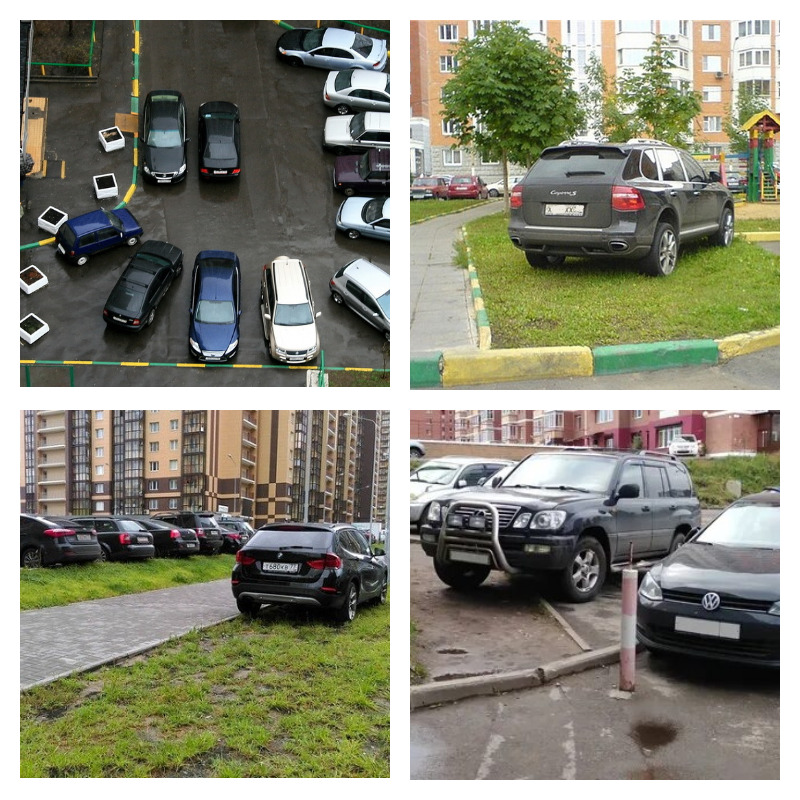 - Парковка на газонах, детских площадках